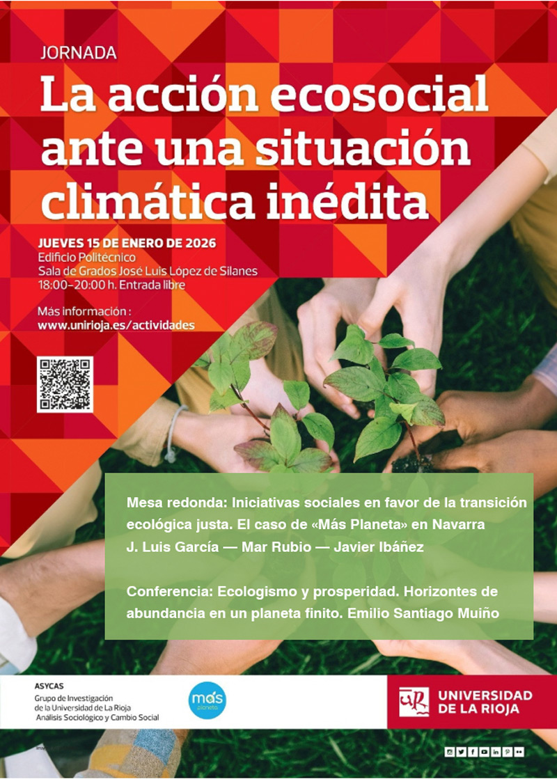 Jornada «La acción Ecosocial ante una situación climática inédita» en @unirioja en la que hemos colaborado con el grupo de investigación ASYCAs del Departamento de Ciencias Humanas.