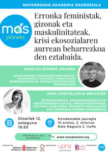 Nafarroako Más Planeta elkarte gazte honetatik gure aletxoa jarri nahi dugu. Eta horretarako, Jardunaldi deszentralizatu hauek Tuteran, Tafallan eta Iruñean antolatzen ditugu irailean eta urrian zehar.
